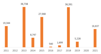En relación con la inversión originada por la subasta de espectro del año 2019, esta fue presentada en la publicación de diciembre de 202115 , a partir de los valores por adquisición de espectro reportados en el MSC del año 2020. En 2021, si bien no hubo subasta, se evidenció que COMCEL realizó una inversión correspondiente a la renovación del permiso de 5MHz de espectro IMT en la banda de 1900MHz16.