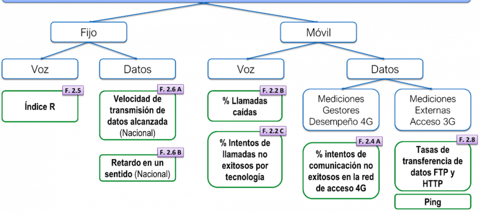 En este sentido, se definieron indicadores de calidad para los servicios de telecomunicaciones de voz y datos fijos y móviles, como se resume a continuación.