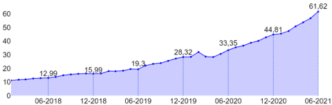 En junio de 2021 (Gráfico 6) se registró una velocidad promedio de carga de 28,8 Mbps, lo que representa un crecimiento del 76,6% en relación con el mismo mes del año anterior, y del 36,7% con respecto a diciembre de 2020.