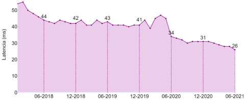 Como referencia, el promedio global para este indicador fue de 37 ms, para junio de 2021.