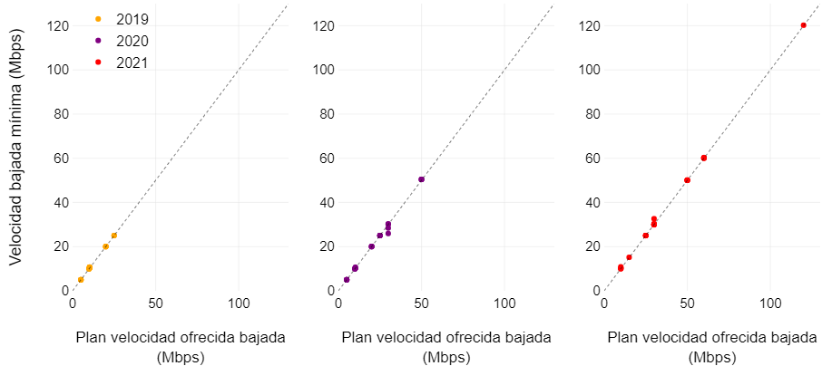 En proporciones similares, durante el 2021 la tecnología xDSL también incrementó las velocidades en sus ofertas, con planes de hasta 50 Mbps.