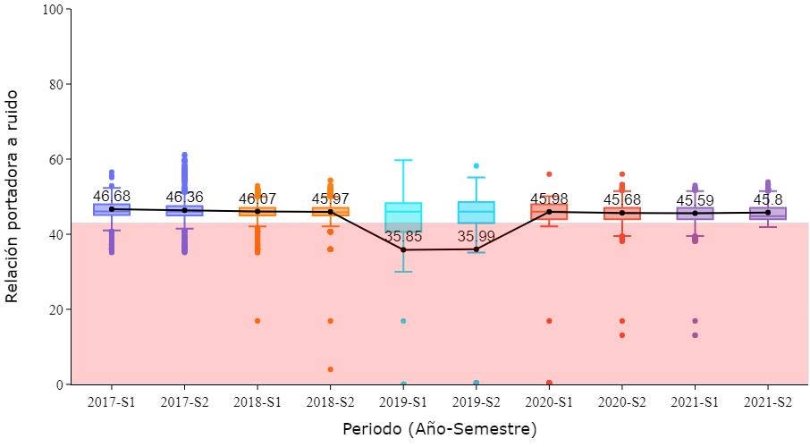 Gráfico 25. Relación portadora a ruido - Diagrama de cajas y promedio