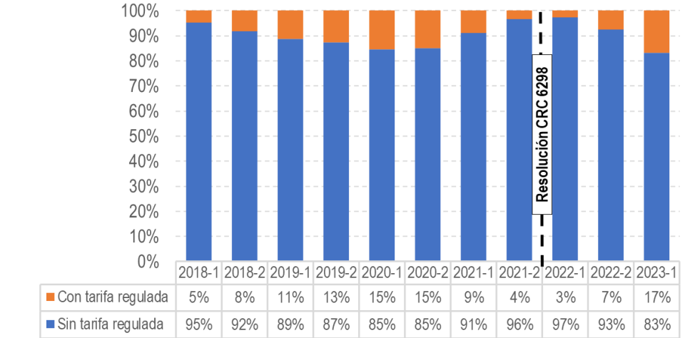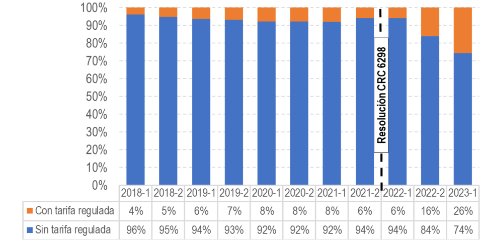 Lo anterior, evidencia que en los municipios con tarifas reguladas se ha promovido el despliegue y uso de la infraestructura. Es relevante mencionar, que el análisis detallado de esta medida hará parte de la evaluación expost que adelantará la CRC en próximos años.