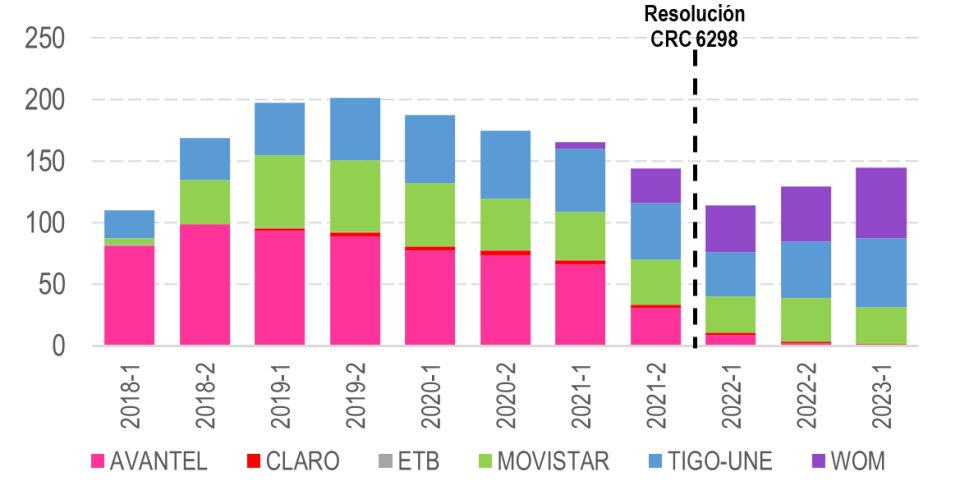 Fuente: Información reportada por los proveedores a la CRC en cumplimiento de lo establecido en el artículo 4.7.2.2 de la Resolución CRC 5050 de 2016.