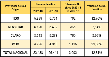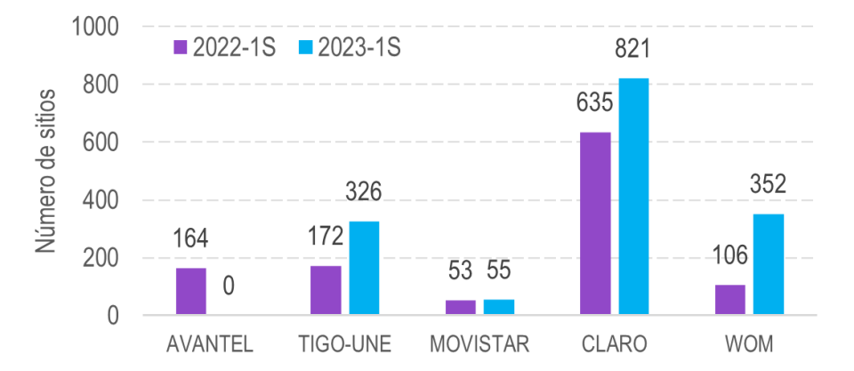 Agregado a lo anterior, al analizar la evolución de infraestructura de los PRO en estos municipios, se evidencia que existe una variación positiva en el número de sitios para la tecnología 4G entre el 2022-1S y el 2023-1S, para WOM (232,1%), TIGO (89,5%), CLARO (29,3%) y MOVISTAR (3,8%).