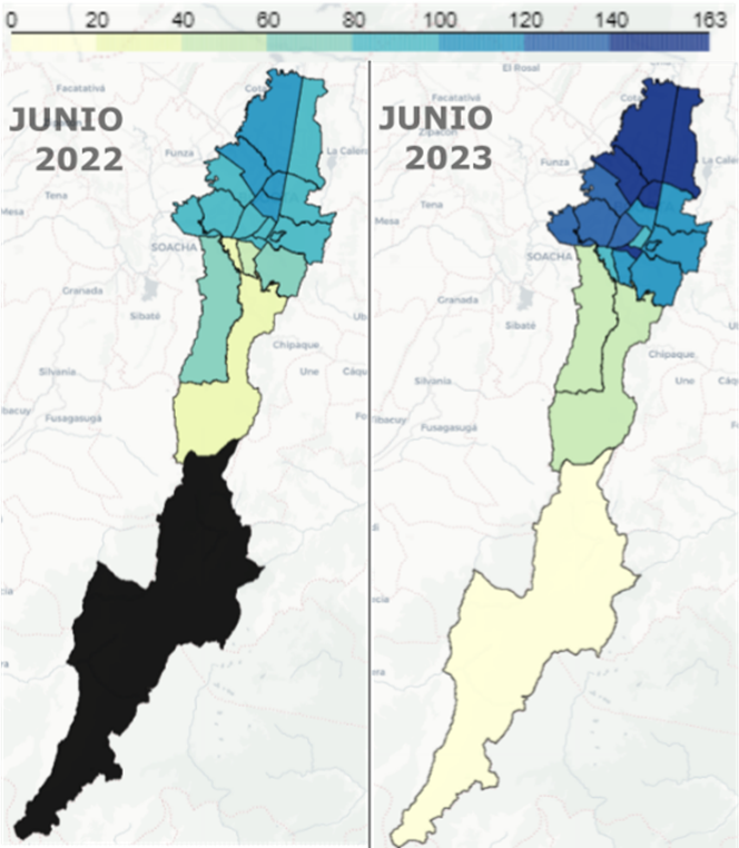 Nota: La localidad de Sumapaz no posee muestras suficientes en junio de 2022 (en color negro en el mapa) que permitan obtener el indicador de velocidad.
